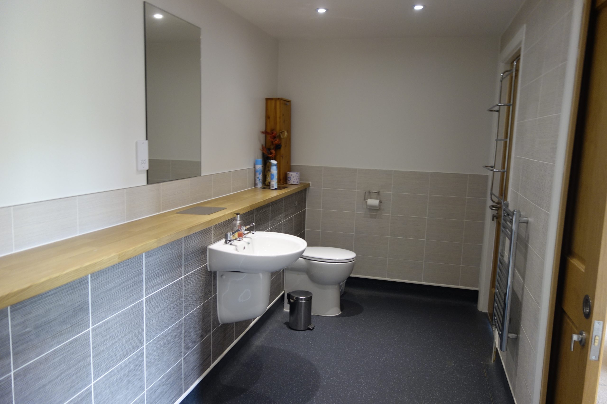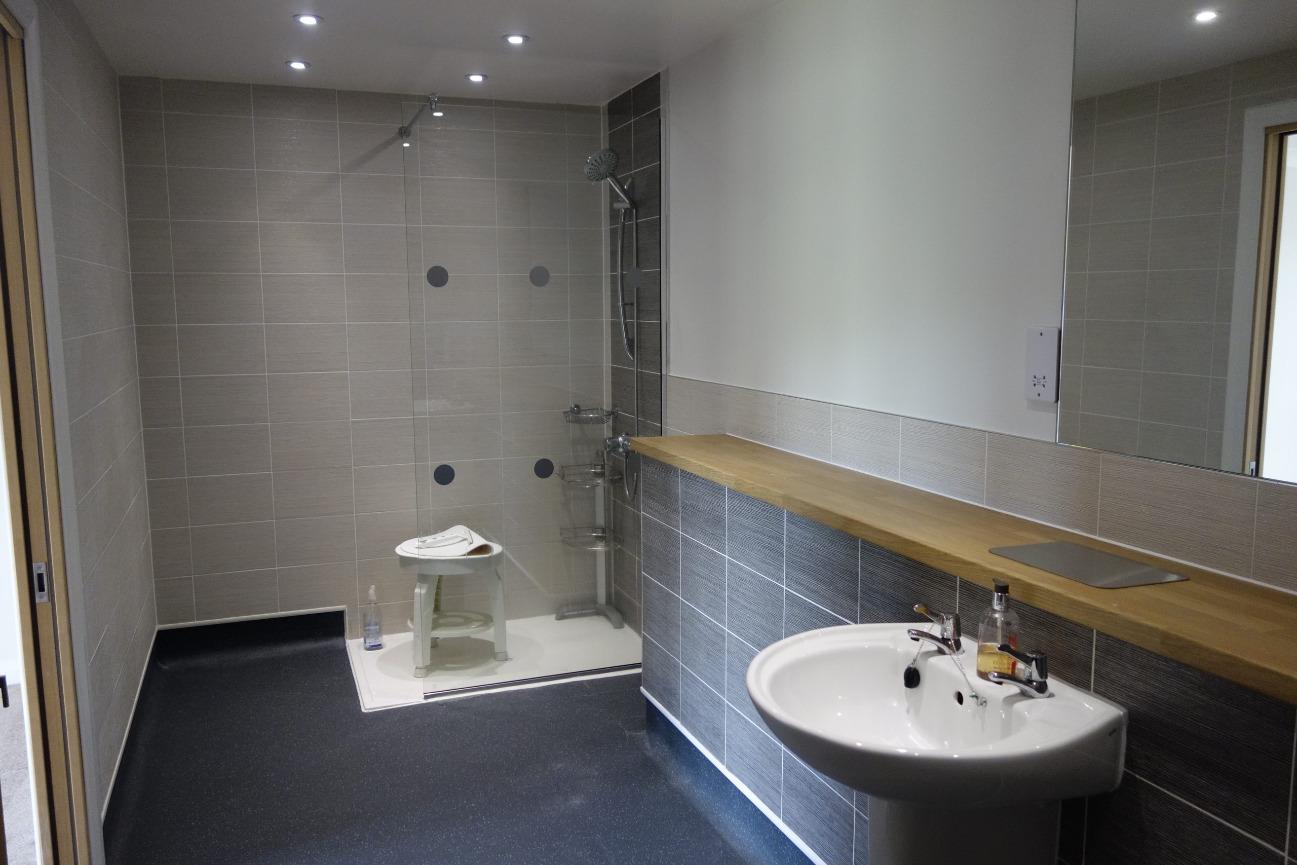 Spacious modern Jack & Jill bathroom with large walk in shower and non slip flooring, with access from the main bedroom and hallway.