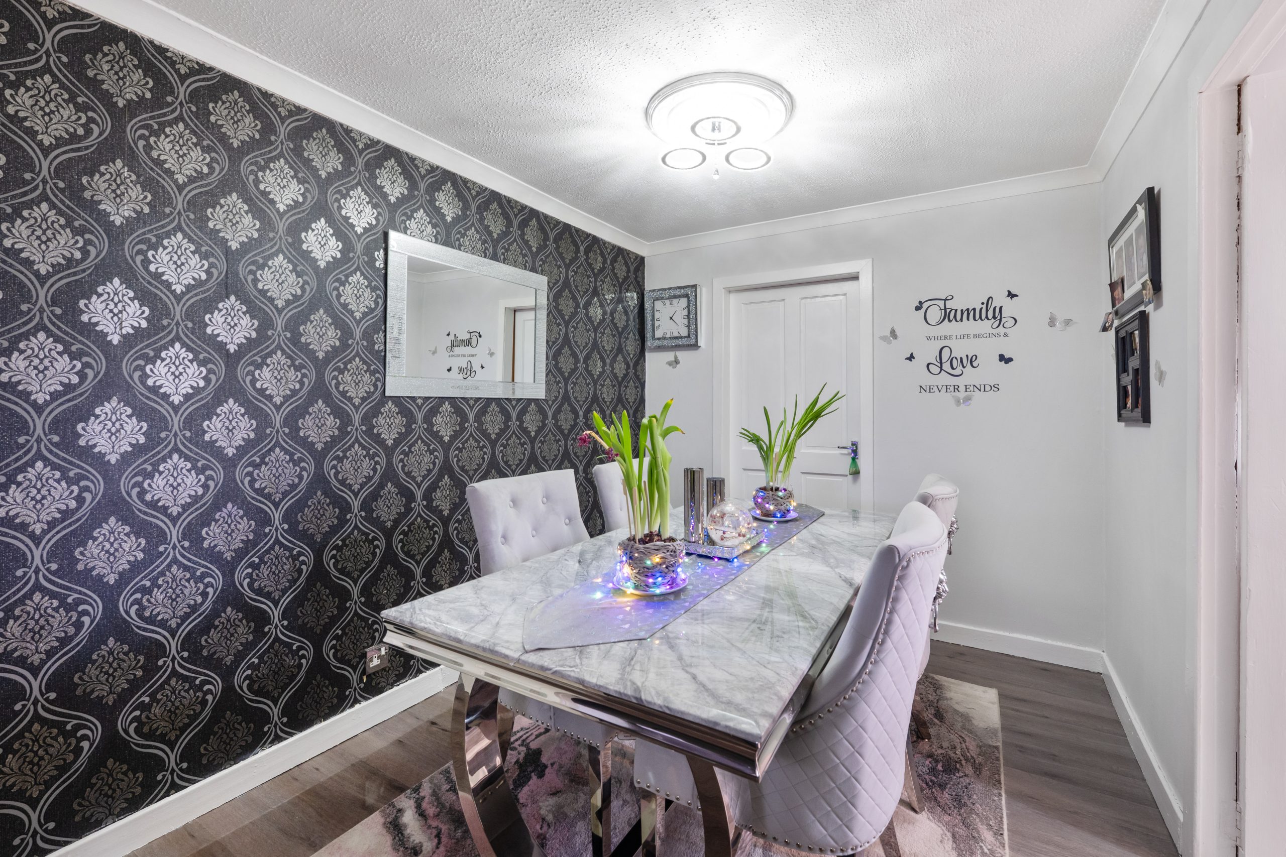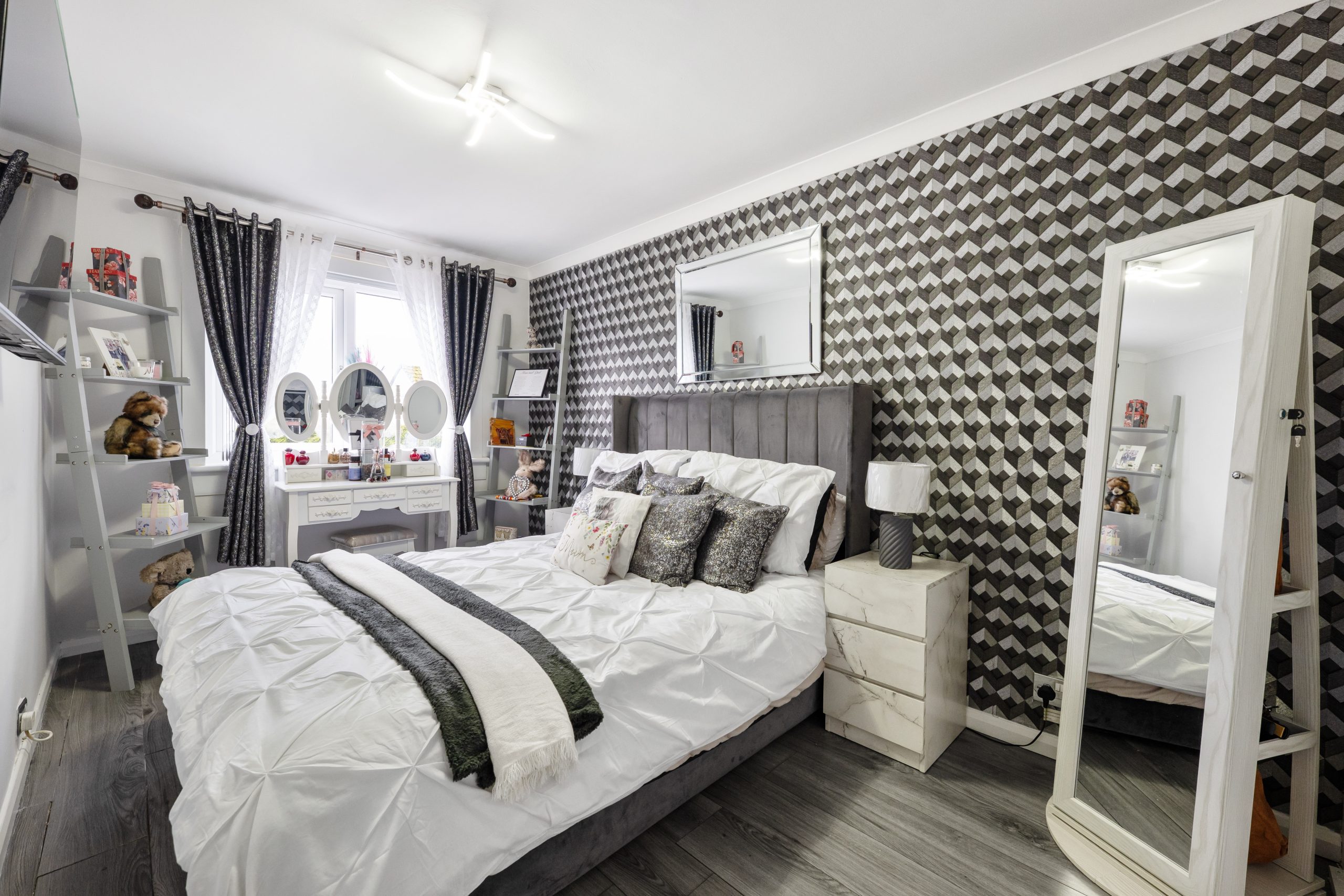 2nd double bedroom to the rear with grey laminate flooring and spot lights